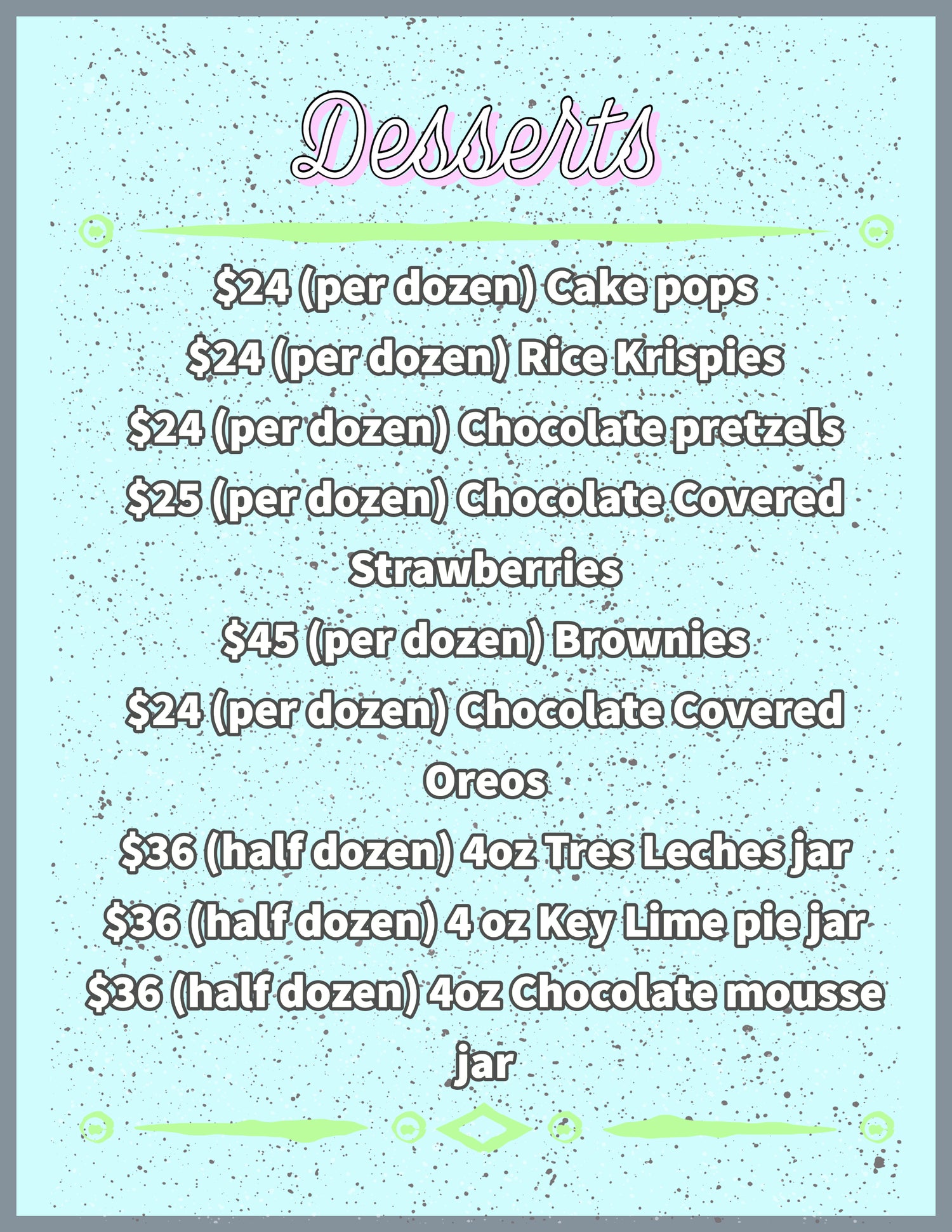 Gluten-Free and Vegan Options are made in small batches. They are based on our menu and customized to your preference. Please contact us for pricing.